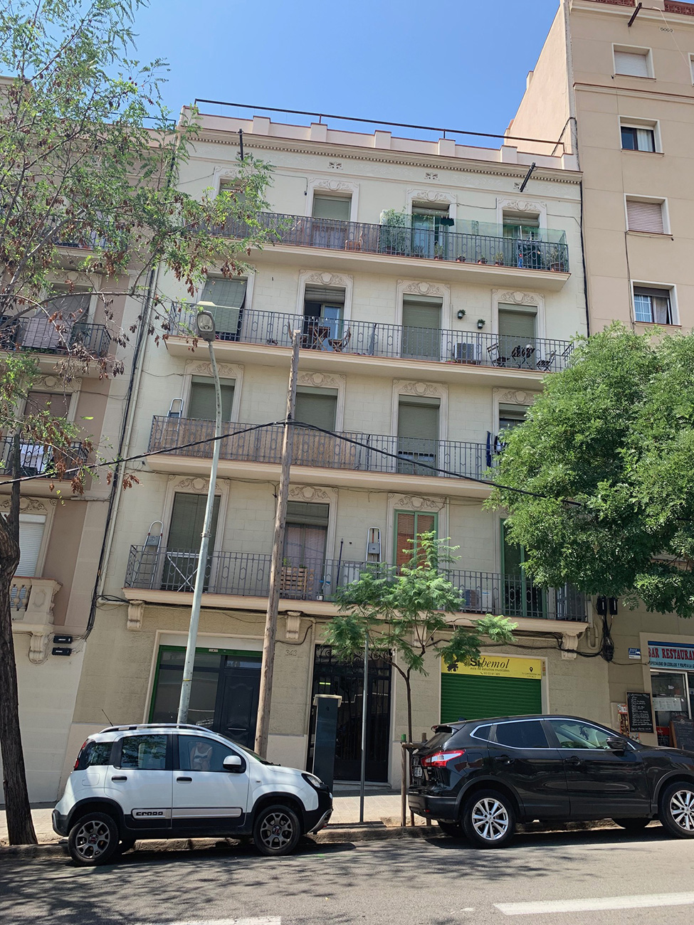 Actuación parcial en fachada principal y posterior en finca de Patrimonio mediante morteros de cal y pinturas de silicato.